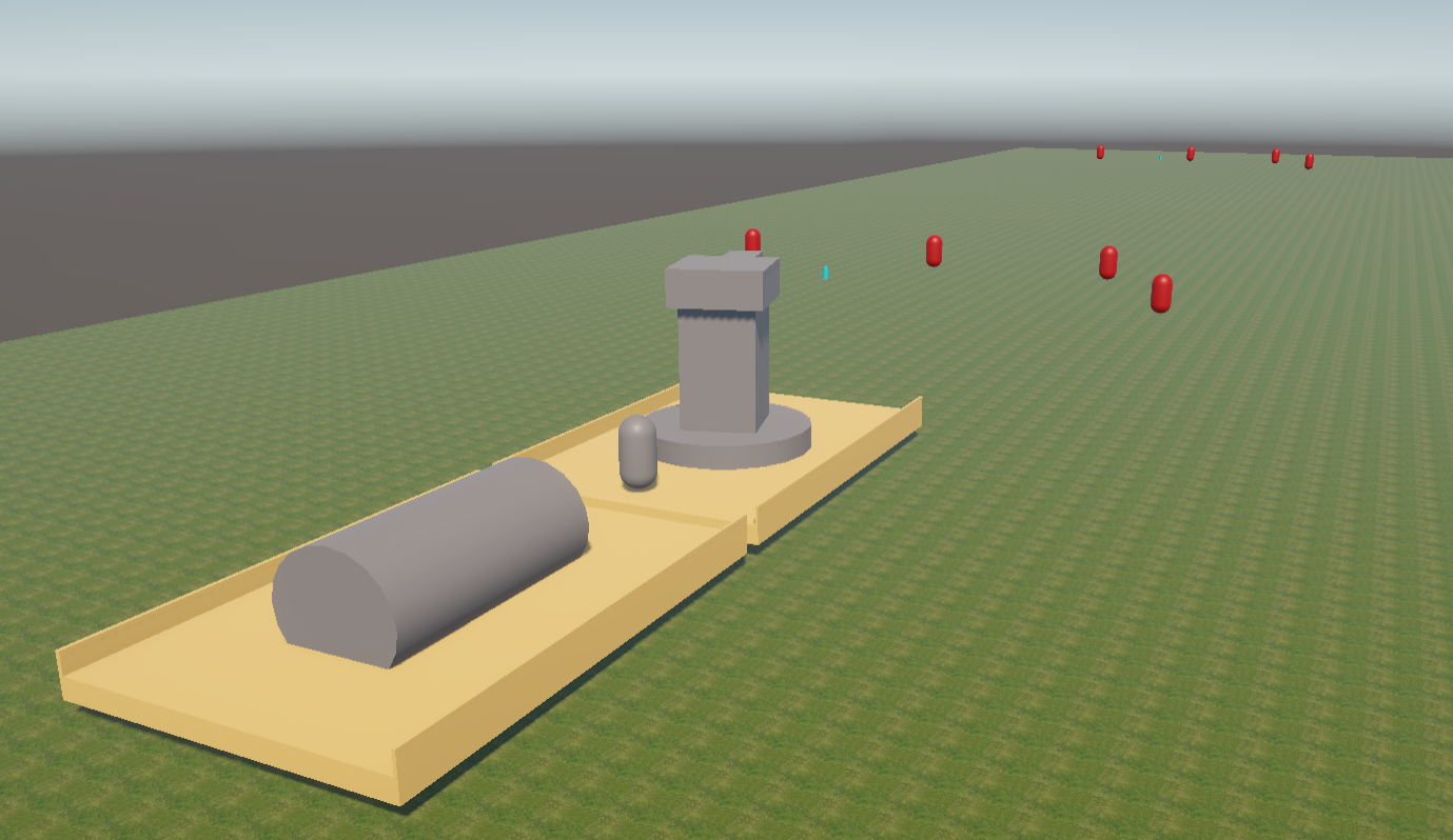 Train weapons: Rotating barrels, recoil animations when firing, reload animations. Animator controlling different firing states (ready, firing, overheated, reloading).